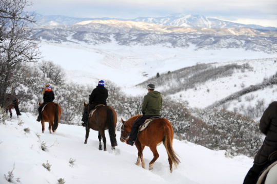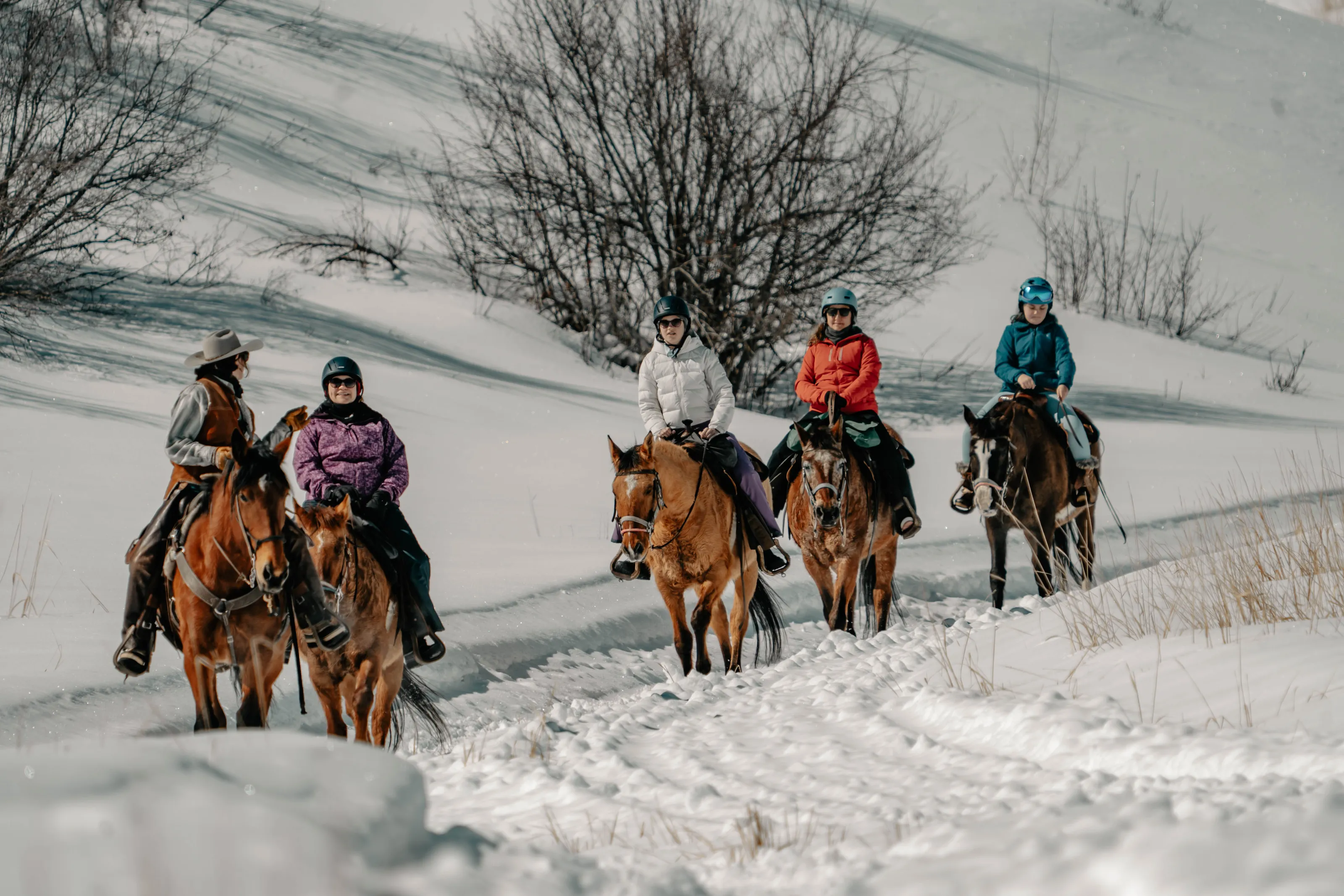 Join us on an hour and a half to two-hour horseback ride (weather permitting) over the hills and through the trees of snowy Saddleback Ranch. Gaze at the Flattops, Sleeping Giant, and Mt. Werner. Let us show you where our ancestors homesteaded the ranch almost 100 years ago.